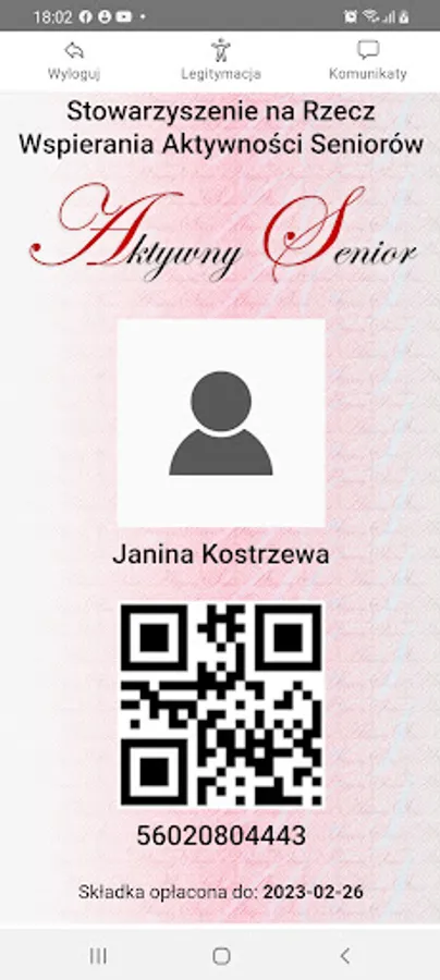 ID card of a member of the Association for Supporting the Activity of Seniors AS