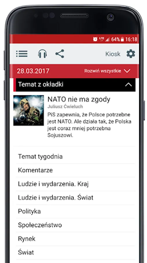 In the application we publish complete editions of the weekly policy, and our special editions: "Historical Helper", "Modern Essentials" and "They My Me. Psychological Guidance."