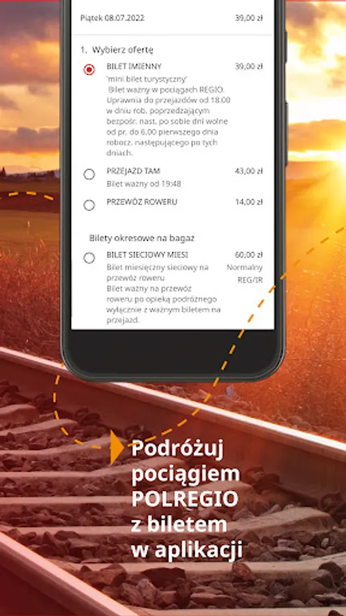 Now, buying train tickets becomes easier! We have created a mobile application to make purchasing tickets for regional trains even easier and available anytime and anywhere. Download the POLREGIO mobile application to buy tickets online for Przewozy Regionalne in a few simple steps.
