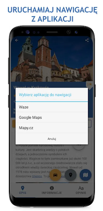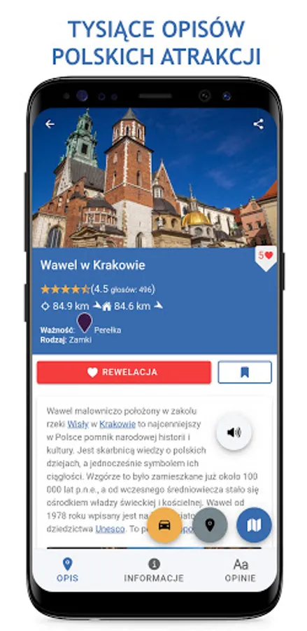 In the application you will find nearly 8000 descriptions of places all over Poland . These are not only the obvious attractions, but also the unknown places that might inspire you.