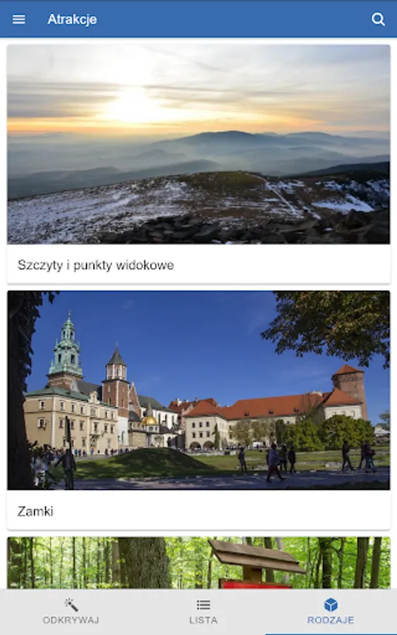The attractions are divided into as many as 30 different types , thanks to which the search becomes very intuitive. Are you interested in castles, palaces, amusement parks and zoos? You'll find these types when filtering.