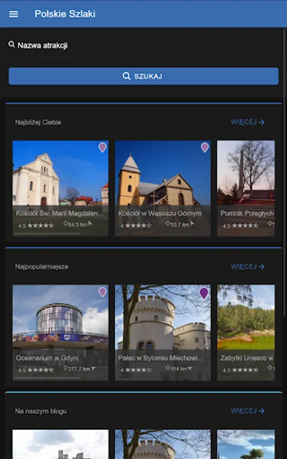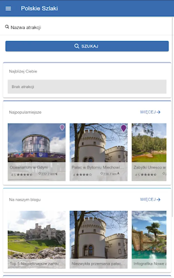 An addition to the application are accommodation that you can find while visiting Poland, and the latest entries on our tourism blog (https://blog.polskieszlaki.pl) where you will find interesting rankings of attractions, information about tourist news or descriptions of our travels - maybe they will be an inspiration for you ?