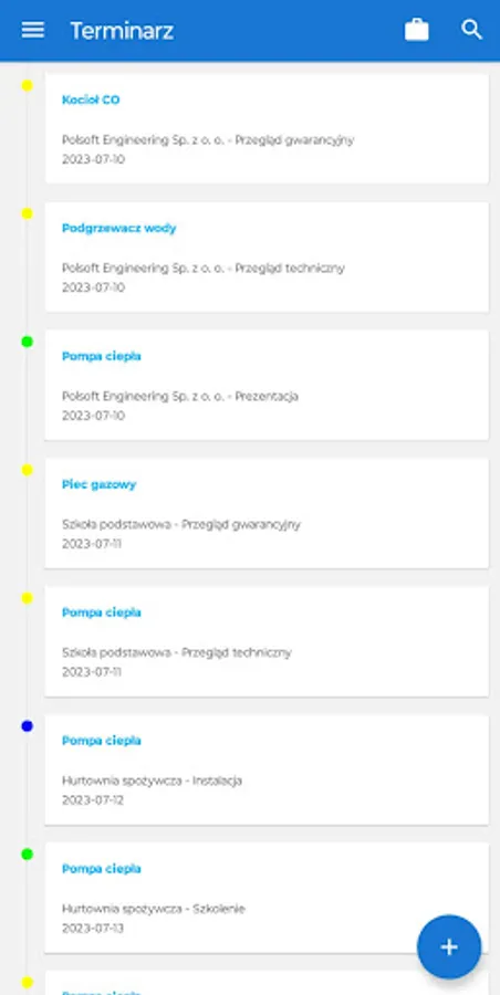 You enter and keep your customers updated. You create a database of the equipment they use (cash registers, refrigerators, air conditioners, gas stoves, photovoltaics) with their serial number, you specify inspection dates and IT’S DONE.