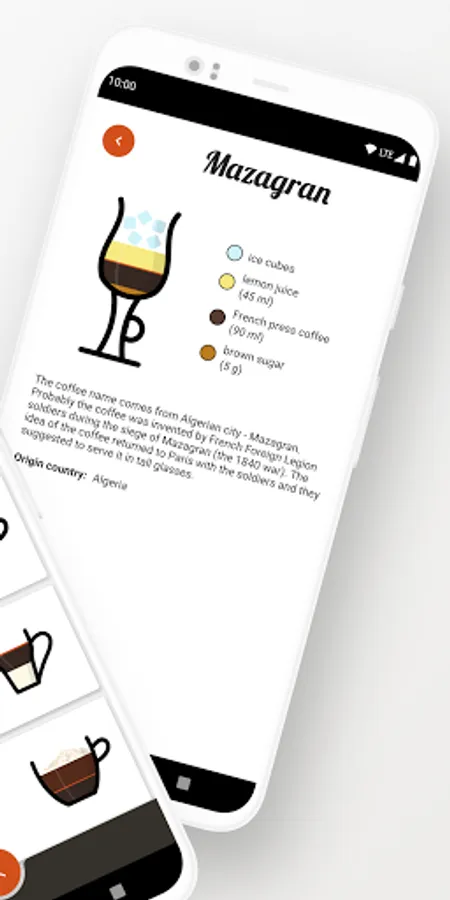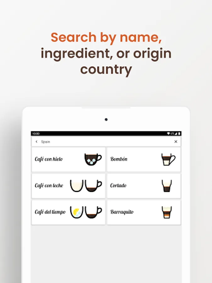 If you ever had a problem when ordering the coffee in the coffeehouse and you didn't know what is hidden under this particular name, we have the solution! In our app, you can check 39 coffees from all around the world - ingredients, origin country, and a short description. We will continue adding more and more.