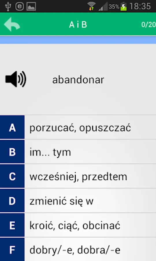 An application that will teach you basic Spanish vocabulary! With our manila folders you'll see how quickly expands collection of Spanish words that you have learned through our application. Browse them, signifying the words that you already know, listen to the correct pronunciation. If you feel confident now - take advantage of the test and let your system rated knowledge!