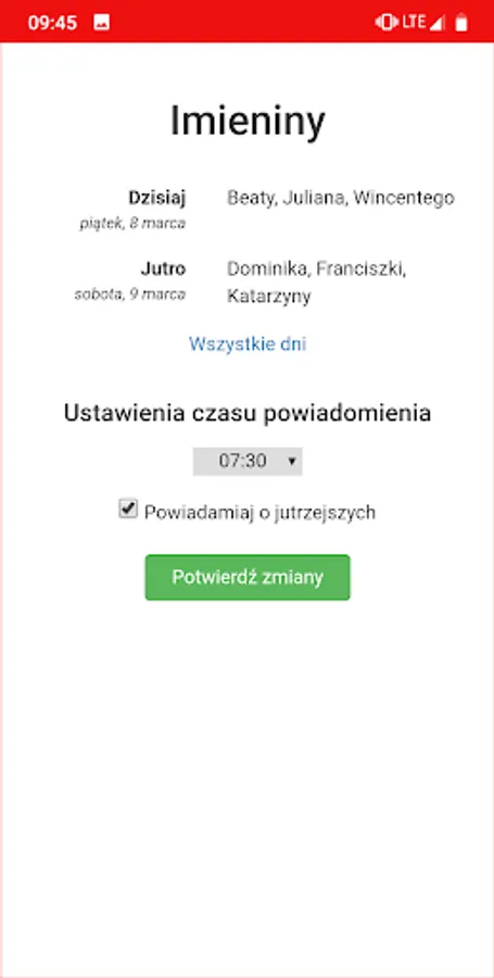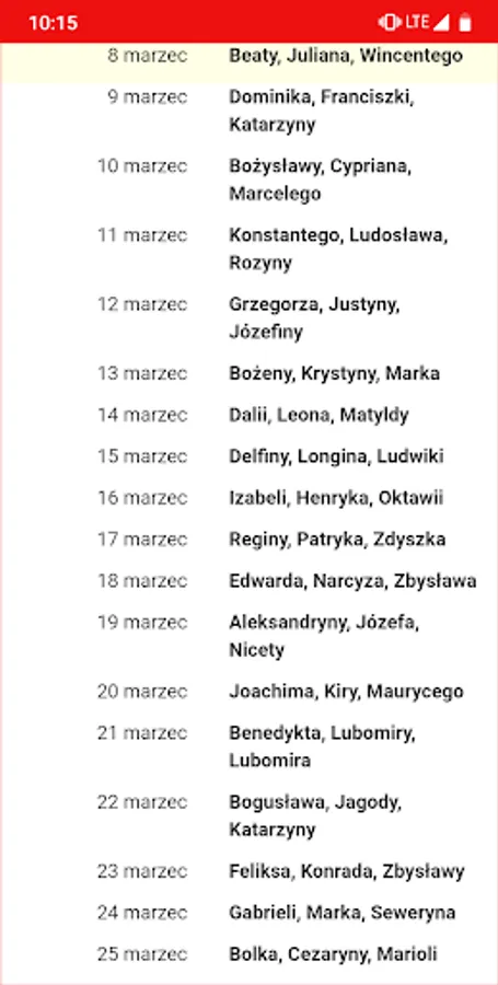 • Calendar preview with all namedays