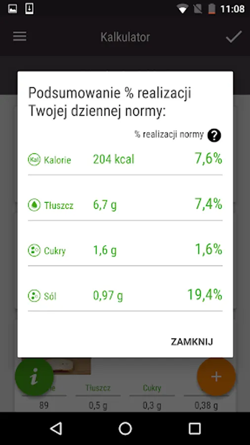 With the calculator you will be able to track what you eat each day. The calculator will calculate your daily requirement of calories, sugars and fat, and every day will tell you what is your% implementation of the standards.