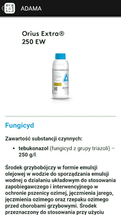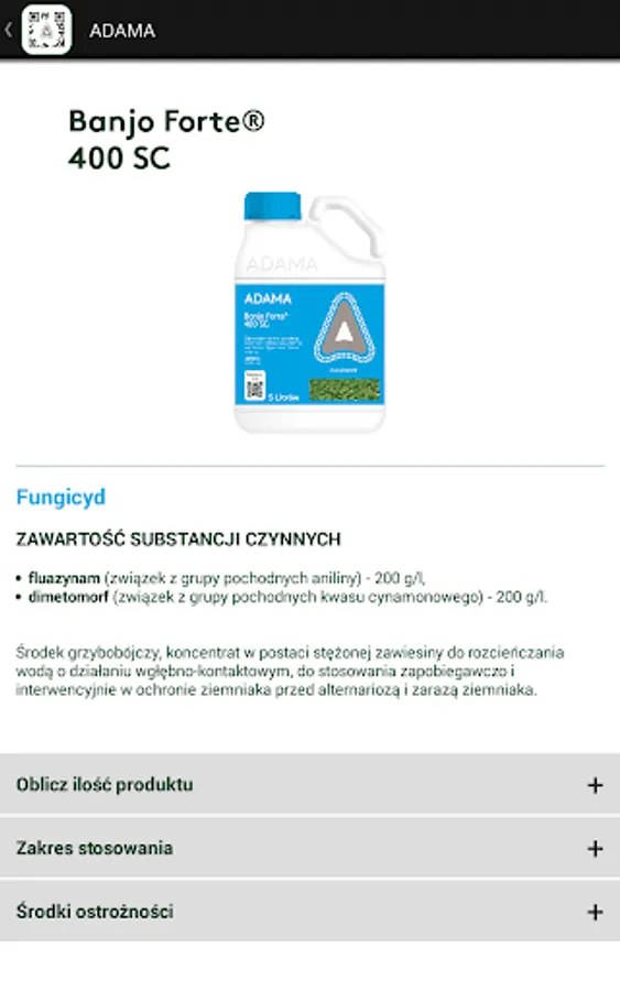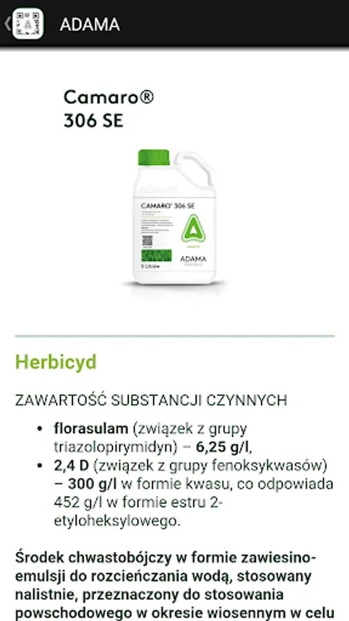Agro scanner app provides information on plant protection products company ADAM. Information appear after scanning the QR codes on the packages contained.