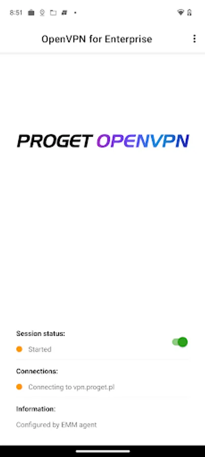 Proget OpenVPN is an OpenVPN client app that allows you to establish a secure access to a confidential data behind the firewall.