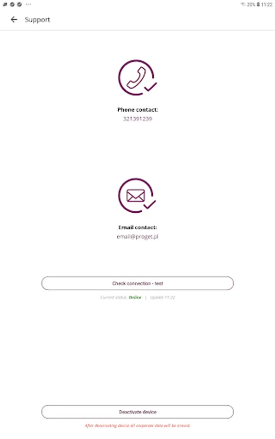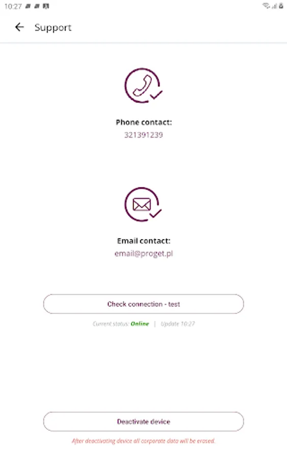 Proget is a solution enabling management and administration of mobile devices in the company. Proget protect corporate and private data: e-mail, calendar, notes and files thanks to the function of performing and restoring a backup of contacts, sms/mms and call logs. The solution also secure mobile data transmission using the highest encryption standards, creating a secure tunnel between the smartphone and internal company resources.