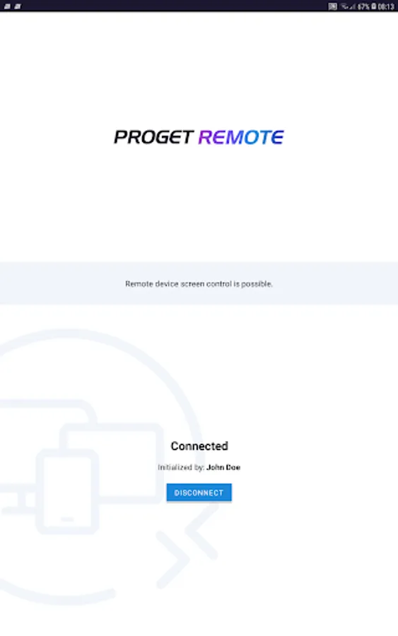 Proget Remote is an application that allows you to remotely access your Android device screen from Proget server. Regardless of where you are at the moment, by establishing a secure connection you can: