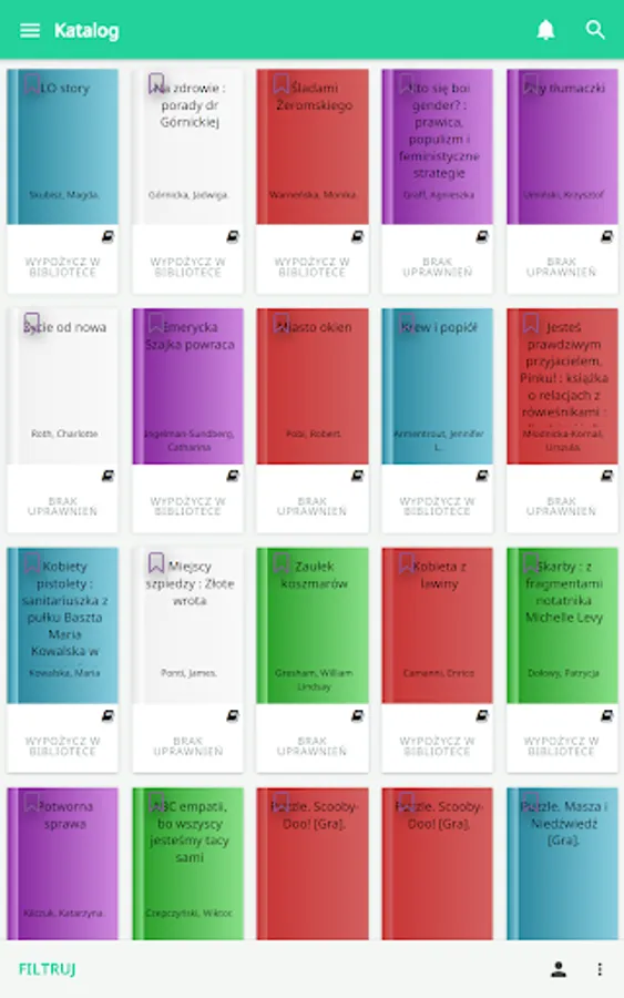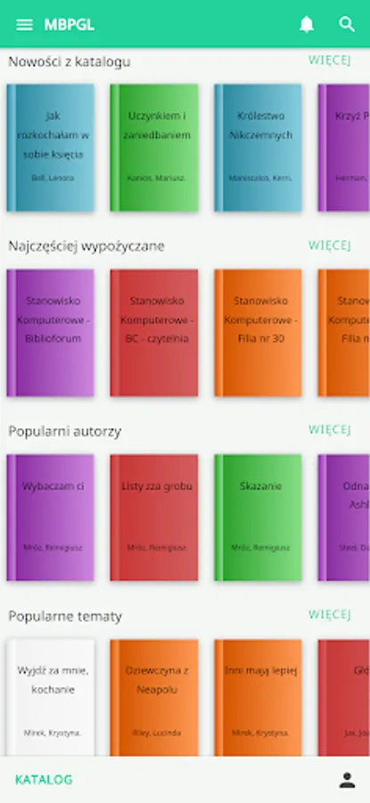 The application fully supports the library catalog and the library reader account.