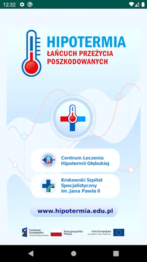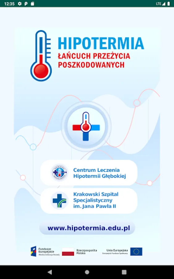 The application was created as part of the project "Chain of survival of victims in hypothermia - national training project for medical dispatchers and paramedics" co-financed by the European Social Fund under the Operational Program Knowledge Education Development 2014-2020.