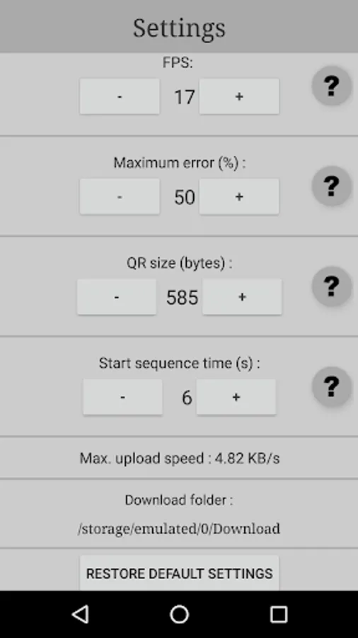 • Transmission settings affects only QR stream producer in upload mode - receiver in download mode only fits to what it sees.
