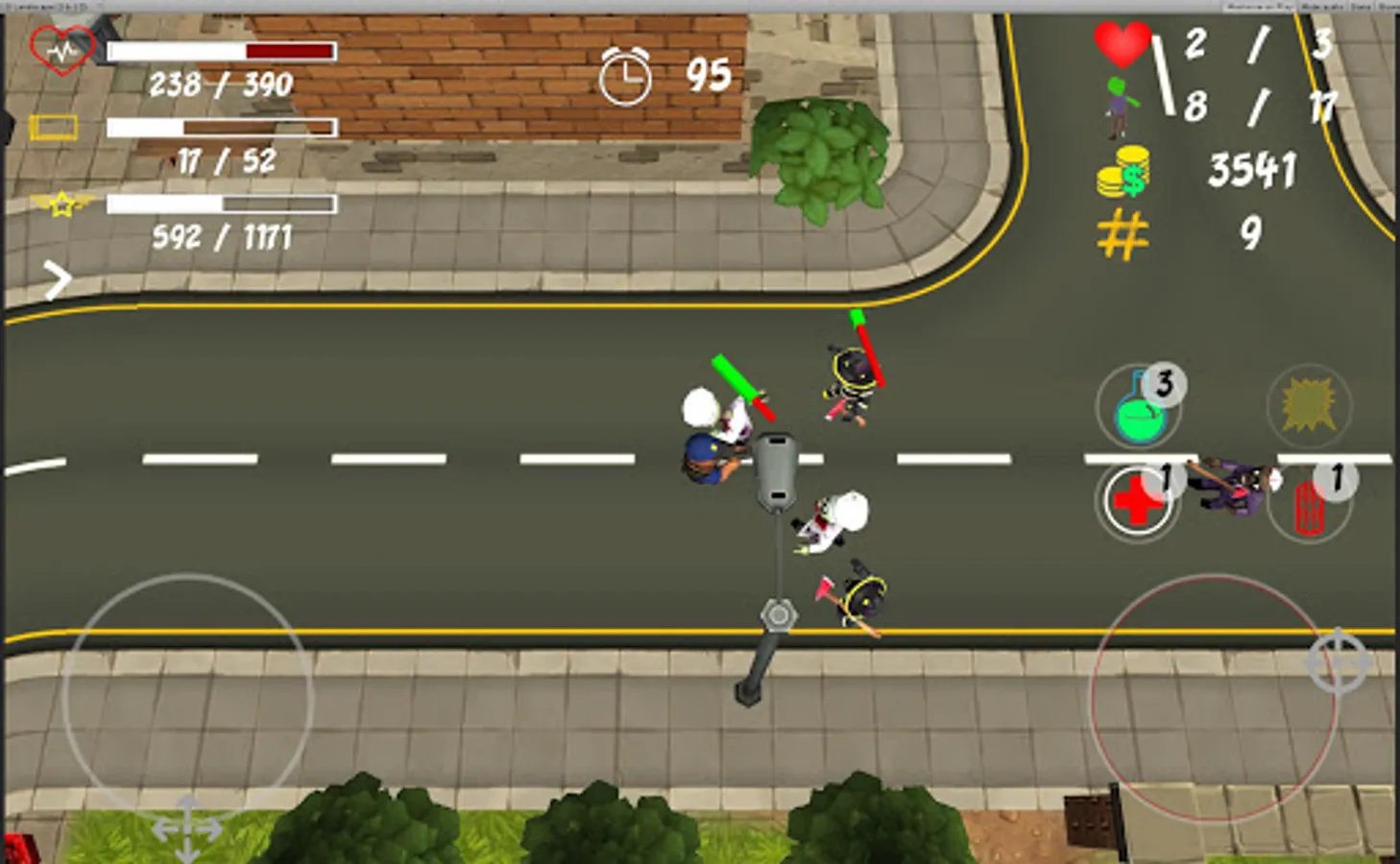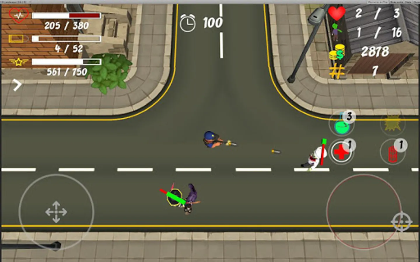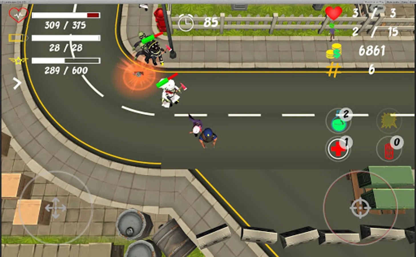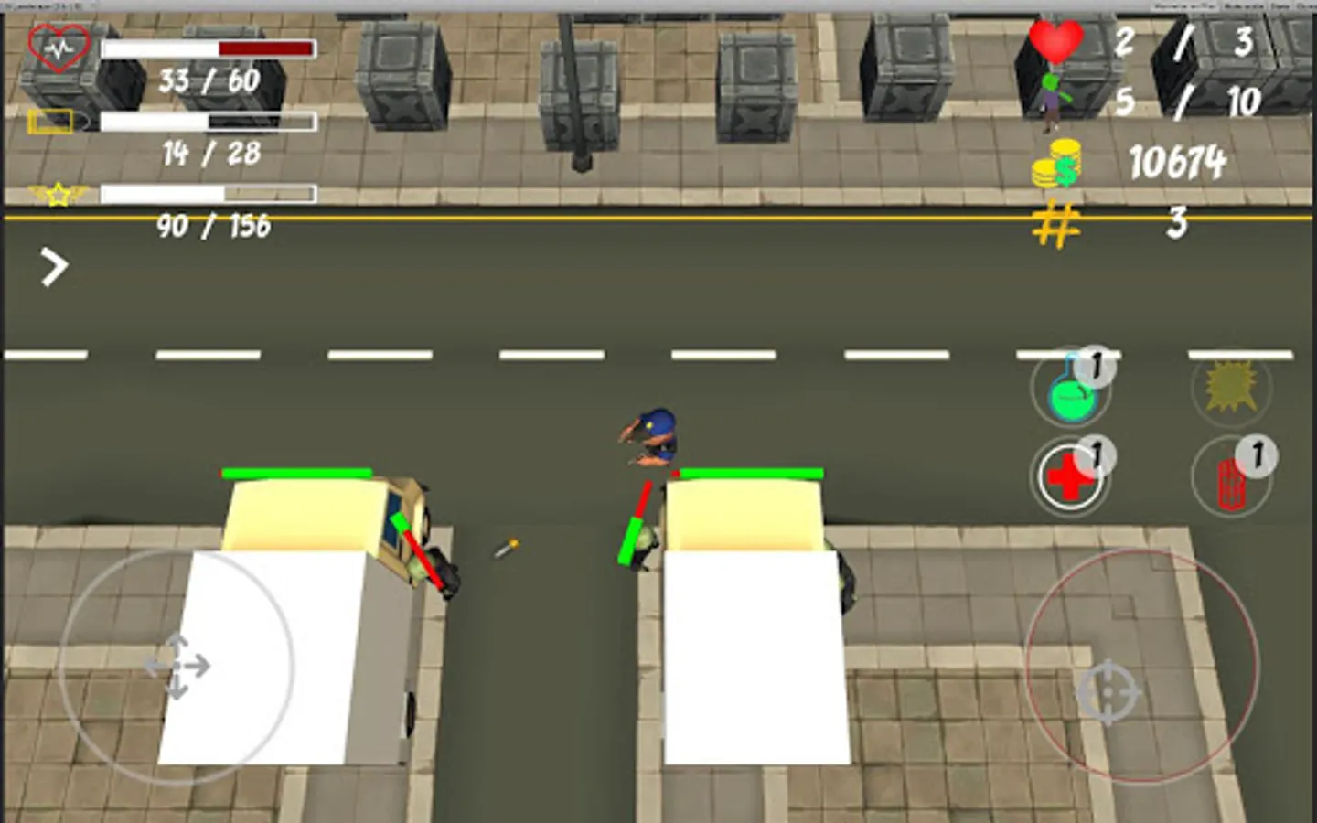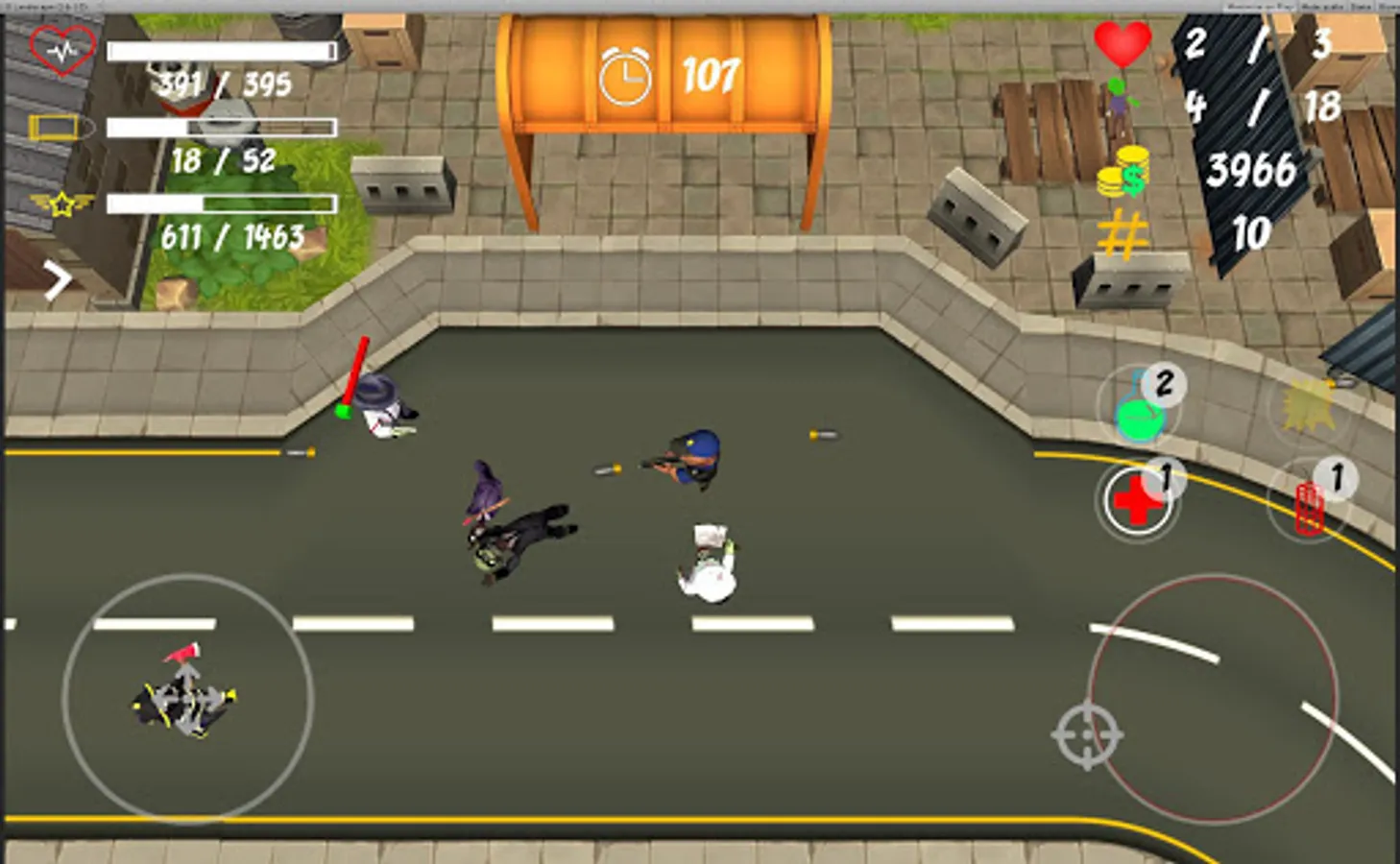 Remember that there are different types of zombies with different levels of difficulty. Use helpful features like healing & speed potions or dynamite!