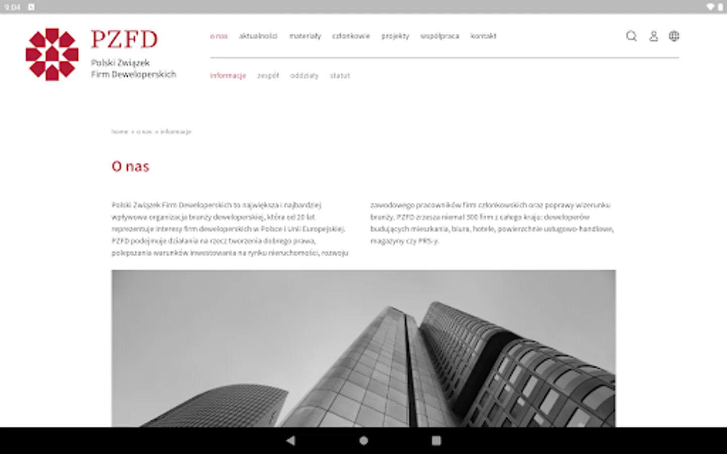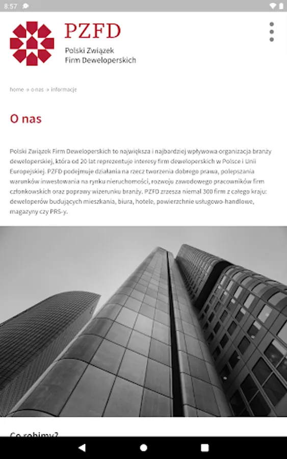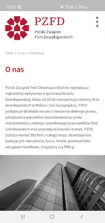 The application includes a mobile version of the PZFD website and all functionalities available to employees of member companies - the ability to view internal documents (such as studies, reports, legal opinions), sign up for training, events and webinars, and access materials from them.