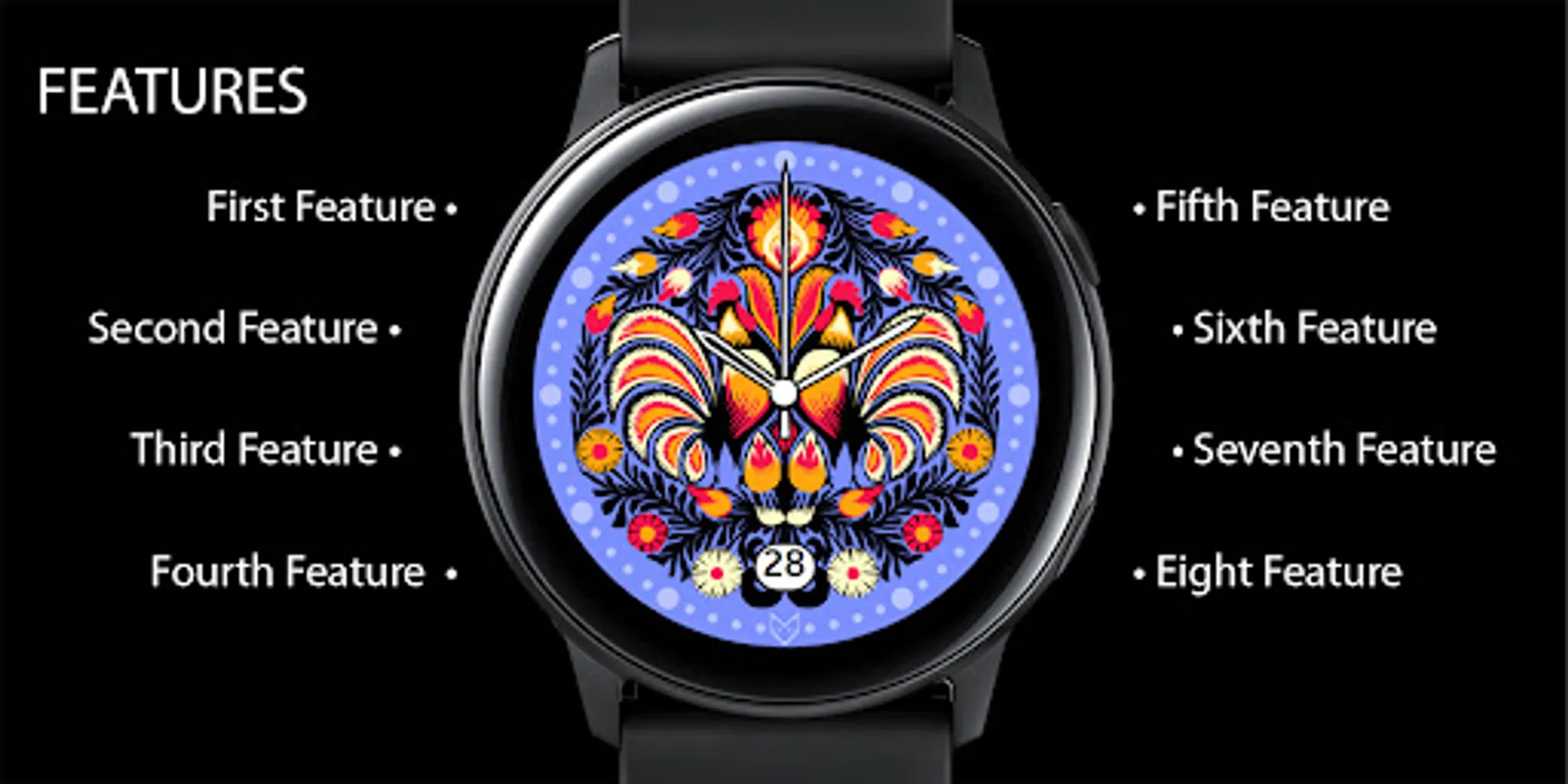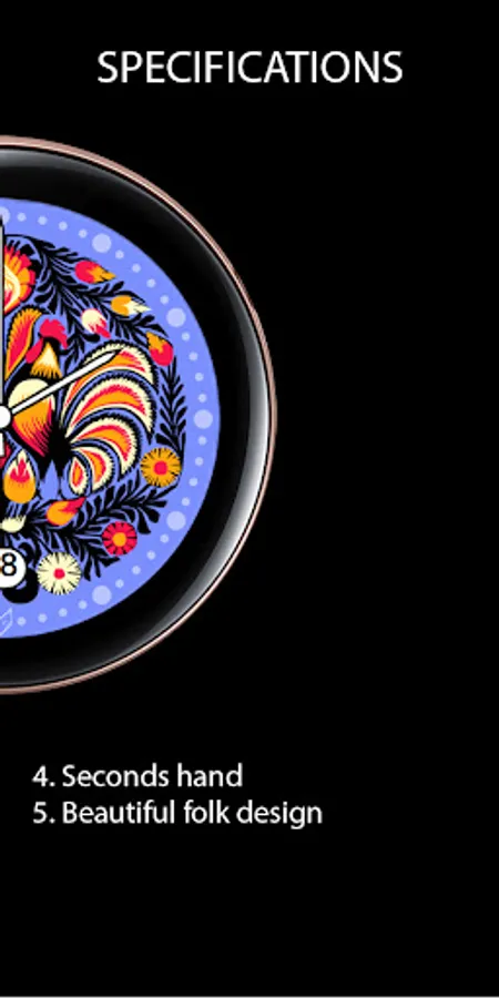 This watch face for Wear OS represents Polish Folk paterns of Lowicz region. The intention is to popularize beautiful Polish folklor paterns to the world.