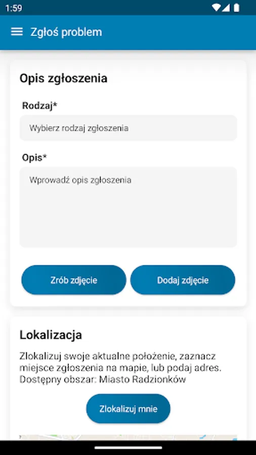The application allows you to report various problems or faults in a very simple way.