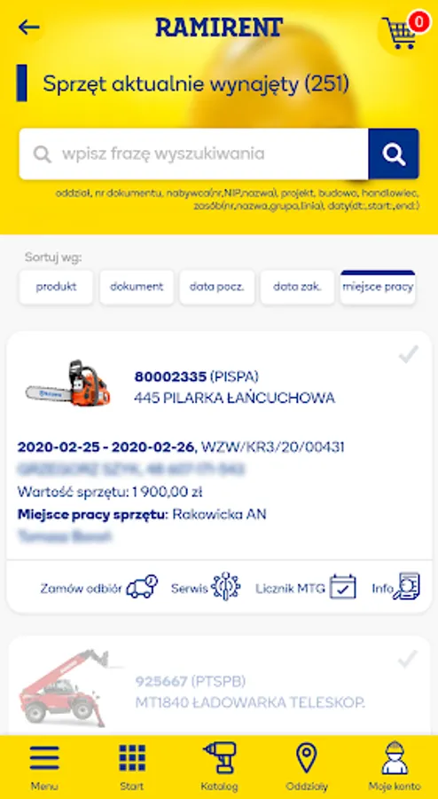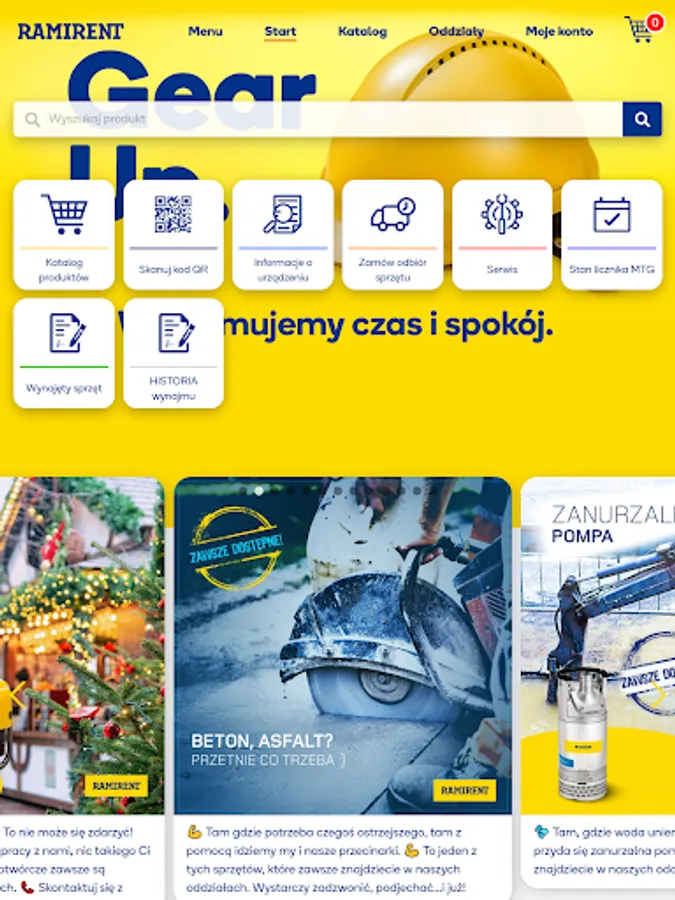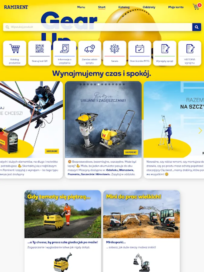 Thanks to RamiOnline you can easily and quickly search and order the necessary equipment, check the technical parameters, get an online preview of the list of currently and previously rented machines and devices together with access to technical documentation and operating instructions. You will report the end of the lease or the need for service, you will find our Customer Service Offices, contact our specialists, you will be up to date with our promotions and special offers.