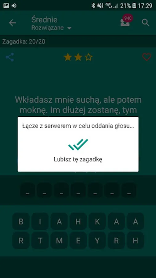 The application does not require an internet connection to work properly. However, it is necessary if you want to vote for any puzzle or download database updates.
