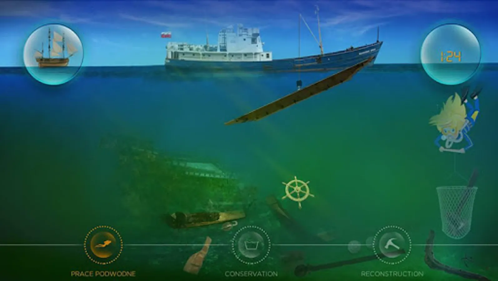 An educational game in which you will learn about the difficult process of shipwreck reconstruction. First, pick up wreck fragments from the bottom of the sea, carry on maintenance and then reconstruct the ship. Let’s get started!