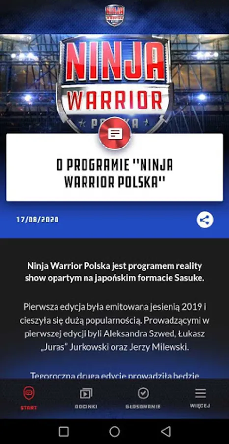 The application will be a perfect complement to the program. Thanks to it, you will be able to get to know the participants of the program better and watch unique, unseen video materials. In competitions, users will be able to win gadgets related to the program. There will be typing and statistics as well as polls and quizzes related to the participants of the program. You will find all this in the free Ninja Warior Poland application!