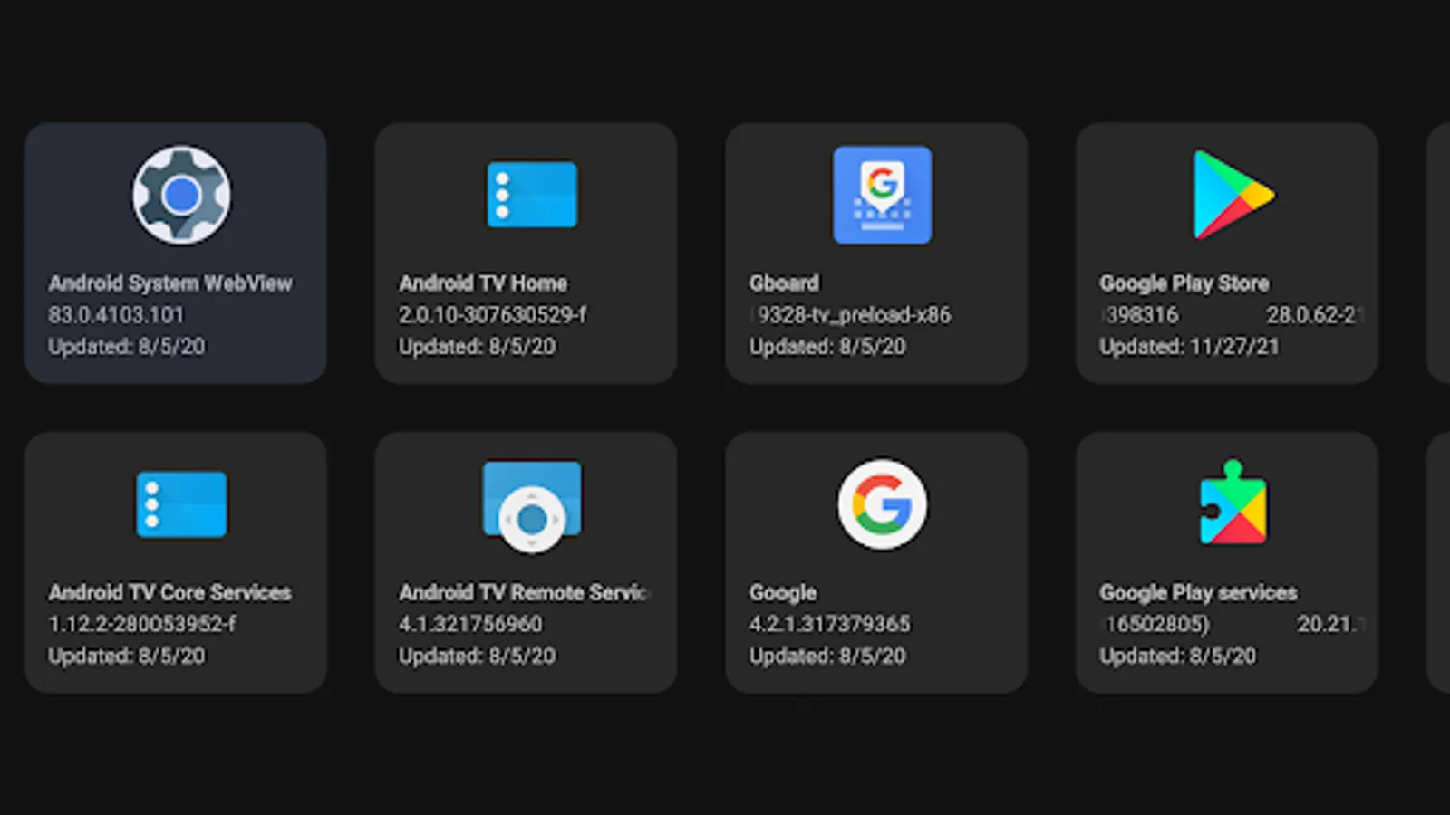 Quickly check version info about built-in packets from Google, when they were last updated, open their store page, receive notifications when they're updated in the background (disabled by default) or go straight to APK Mirror website to download their newest APK versions for manual updating in order to skip staged rollout.
