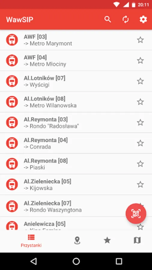 In addition, it allows you to view a list of all stops sorted according to the distance from the user's current location, open the screen with departures after scanning the QR code of the stop or display the locations of all stops on the map.