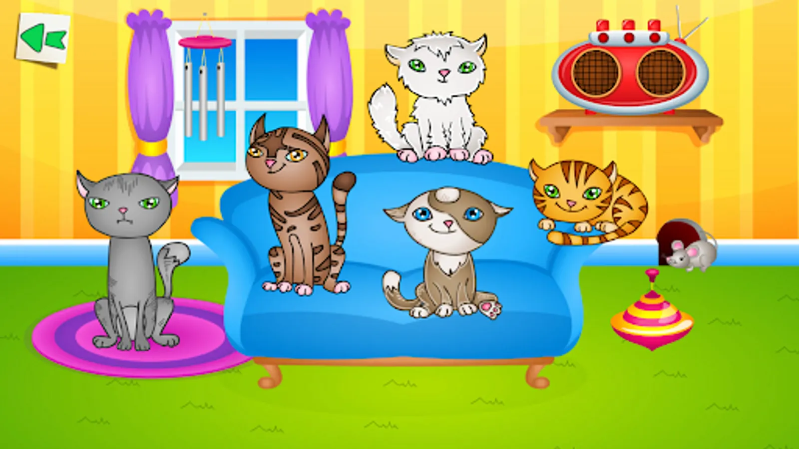 The game features activities that foster children’s creativity, motor skills, and appreciation of sounds and music. Play with sounds, create your own music, record and share to your friends. Funny pets will help you with it: cats, dogs, ducks and birds.