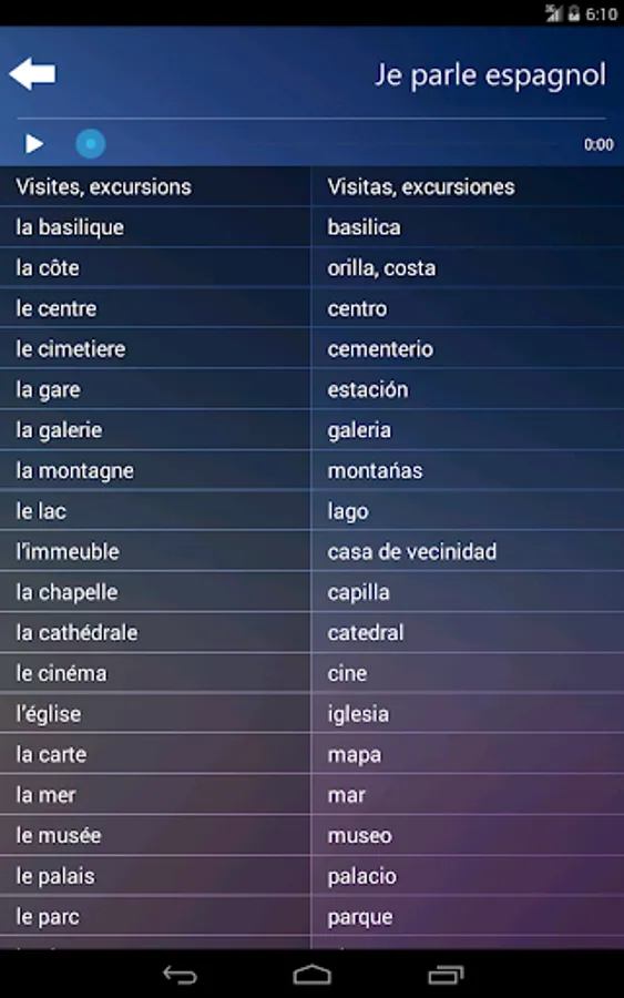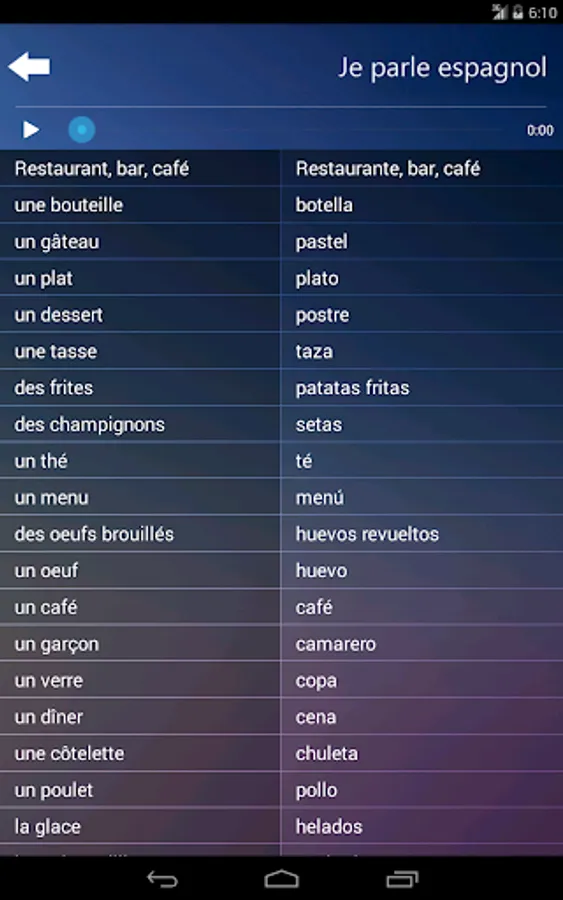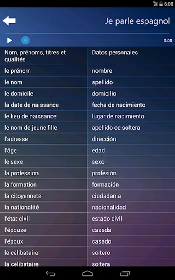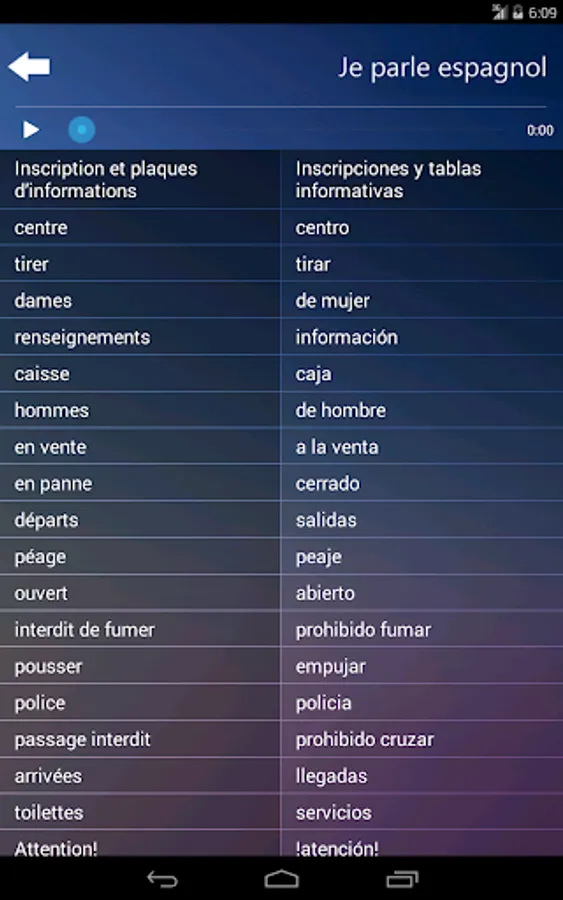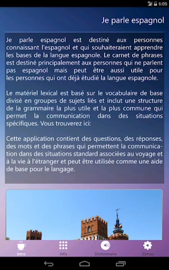 * App is for people who know FRENCH and want to learn the basics of SPANISH language.