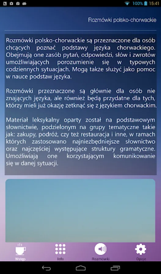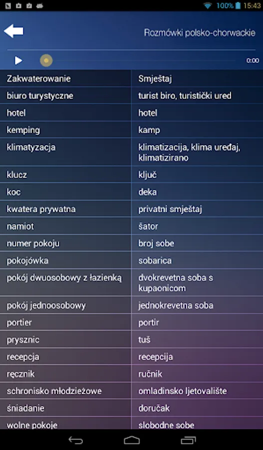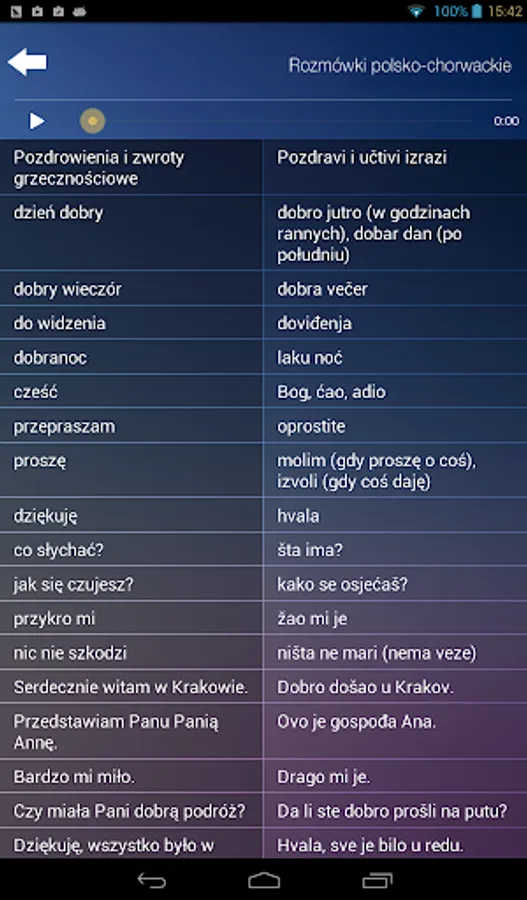Polish-Croatian phrasebook is an application designed for people who want to learn the basics of the Croatian language. It includes questions, answers, words and phrases which enable communication in typical everyday situations.