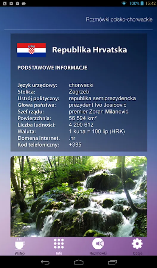 Additionally, the application provides basic information about Croatia.
