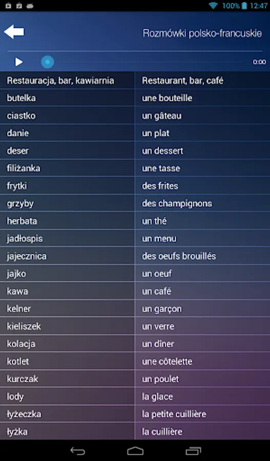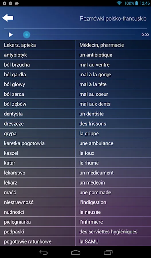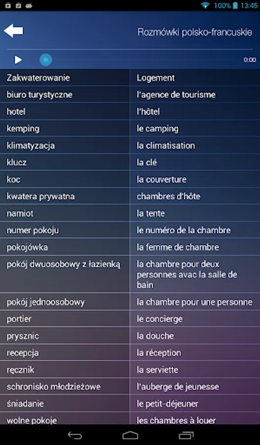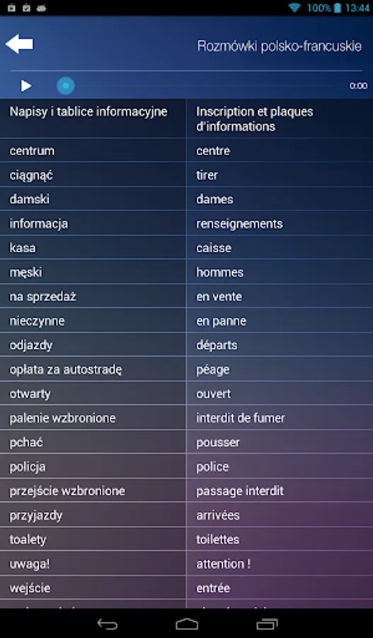 Wszystkie zwroty, wyrażenia i rozmówki - oprócz tego, że wyświetlają się na ekranie - są również w formie audio.