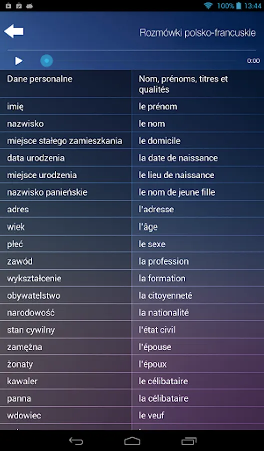 Pliki audio zostały utworzone w taki sposób, aby było możliwe odsłuchiwanie dowolnie wybranych słów, zwrotów i wyrażeń. Możesz również odsłuchać cały materiał z danego działu.