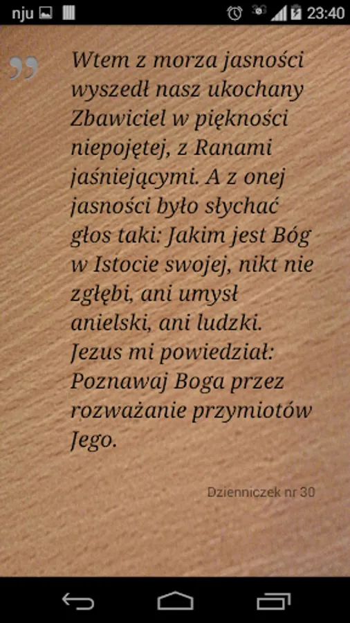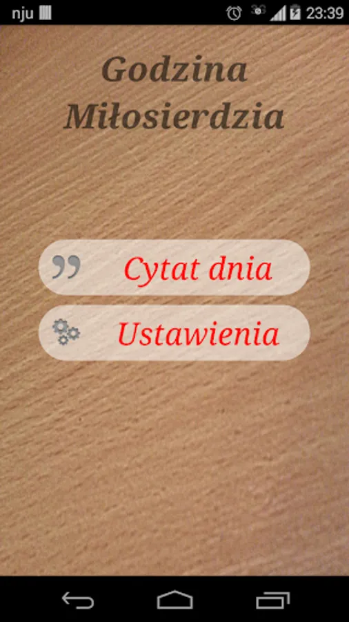 The purpose of this simple application is the display of the selected thoughts from the Diary of St. Sister Faustina Kowalska for every day. User 15:00 receives notification of the quotation available in the form of red hearts.
