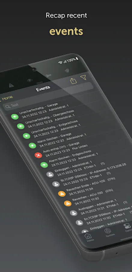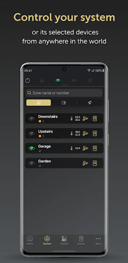 * complete functionality of the system keypad (e.g. arming/diasarming, event log viewing),
