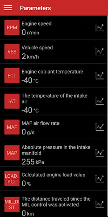 In order to gain a better understanding of the processes taking place in the engine, the application has the ability to monitor the operation of individual sensors in the car:
