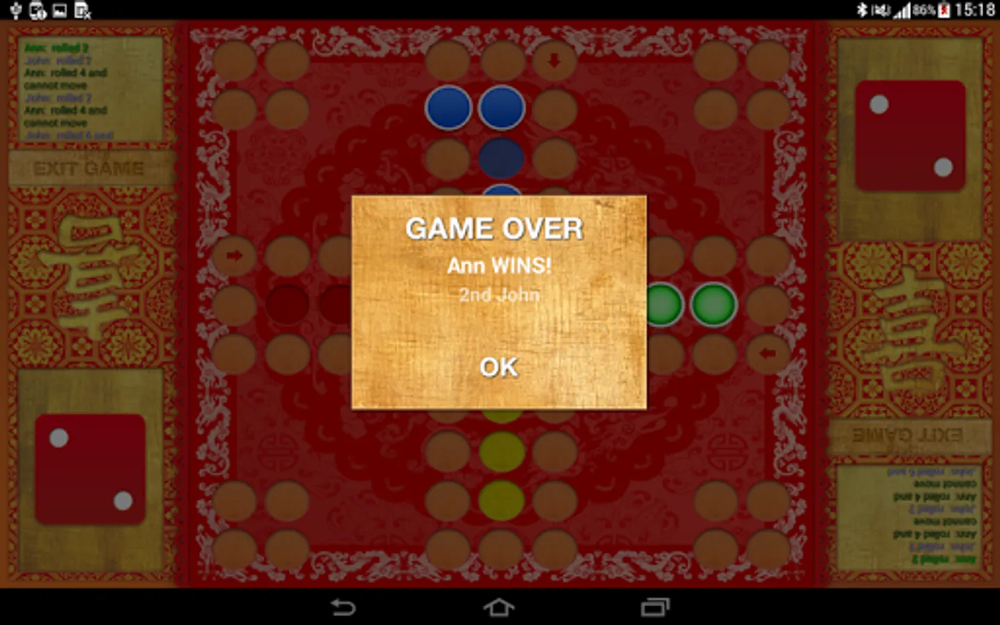 Ludo is traditional board game also known as "Pachisi" or "Don't be angry, man". Ludo is a game for 2-4 players. Each player race his four tokens to finish points according to dice rolls. Player whose move all his tokens to finish area will win the game. Each player has different finish areas and there are located in the middle of board.