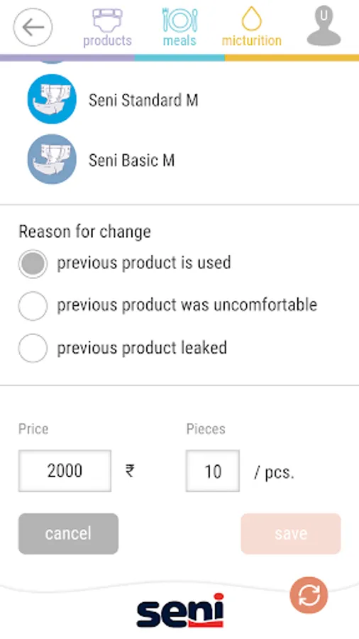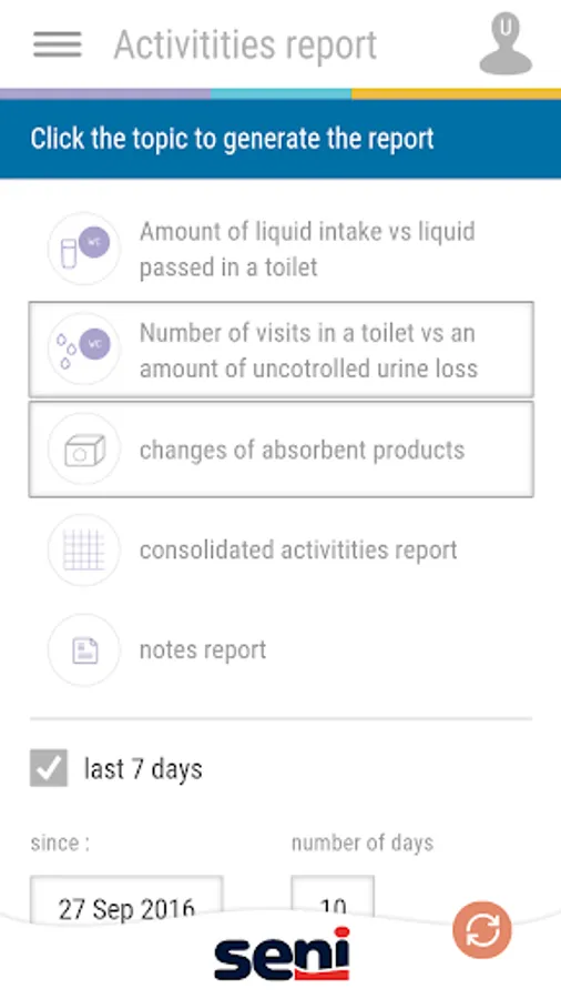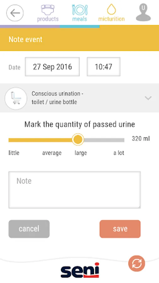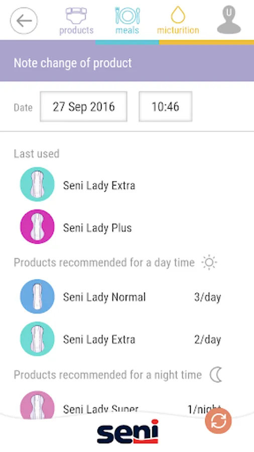 Just fill in your profile details and start using Micturition Diary today. Find out more options in Seni Control App: