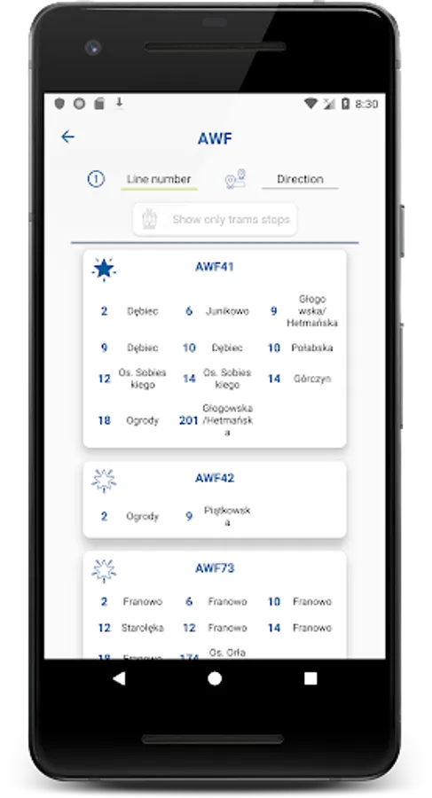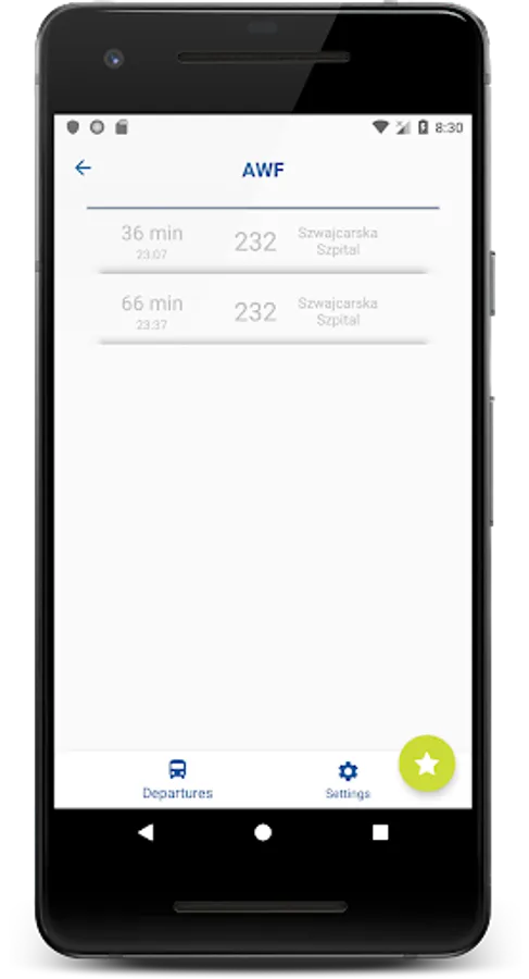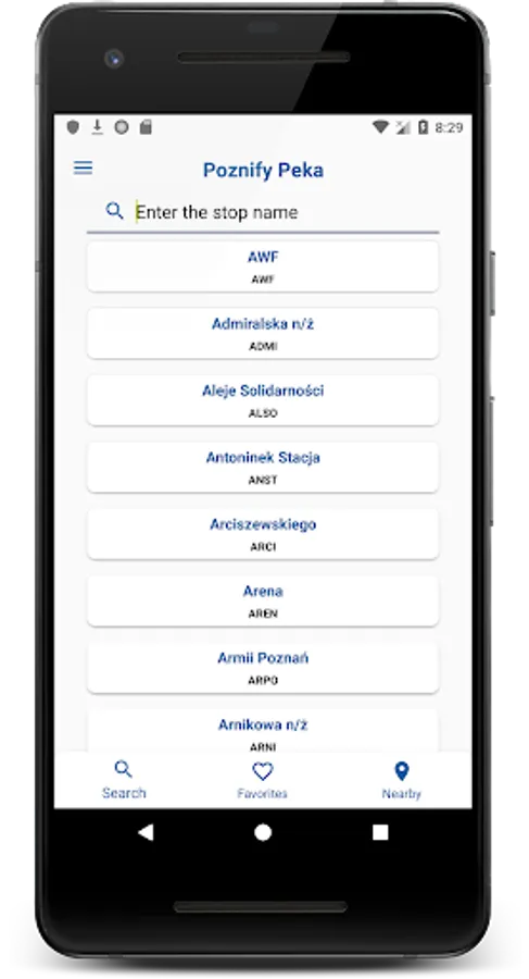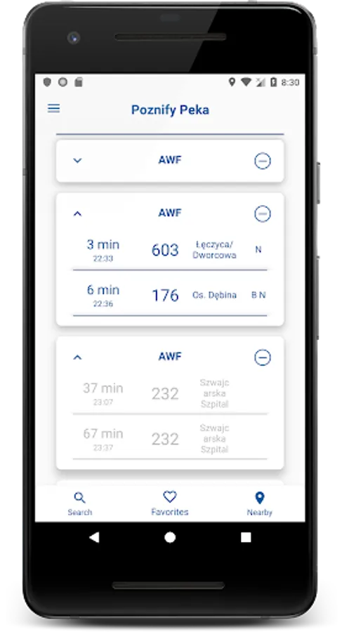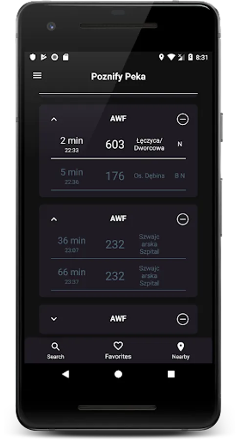 Application that downloads and displays current times of departures of trams and buses, the source of data is "Virtual PEKA Monitor" made available by the city of Poznań.