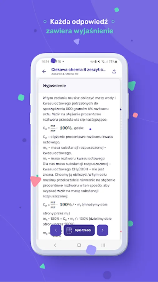 In the application you will find such subjects as: mathematics, chemistry, Polish language, history, biology, physics, geography, nature and COS at the basic and extended level.