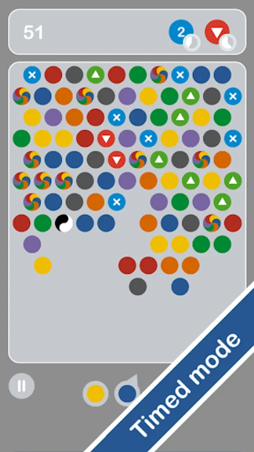 The time arcade mode is similar to classic bubble shooter game, but the new row of bubbles appears every few seconds. There are also powerup bubbles on the screen. If you shoot powerup bubbles, some magic appears: