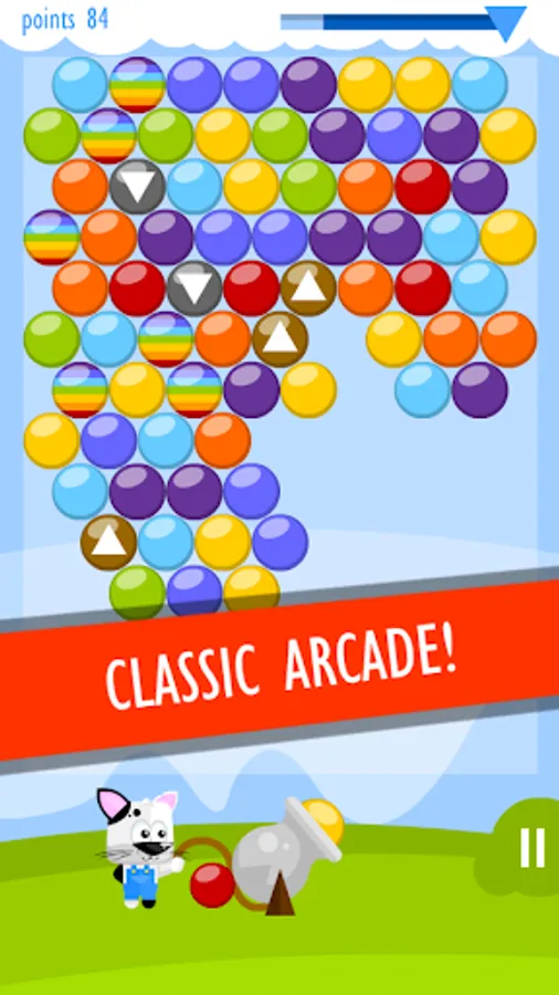 - arcade classic mode: clear all the bubbles on the screen as quick as possible