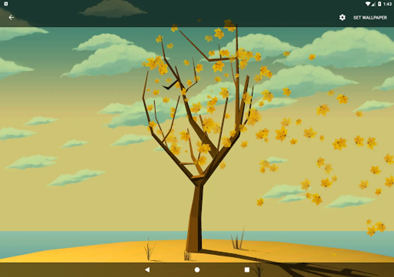 Our beautiful autumn tree with moving clouds, sea and falling (e.g. autumn, summer or spring) leaves will allow you to enjoy the home screen even more. You can set various settings. Just look at video and screenshots - isn't it beautiful? This live wallpaper lets you set an animated and interactive scene as your phone's background.