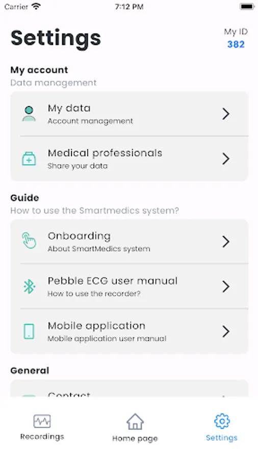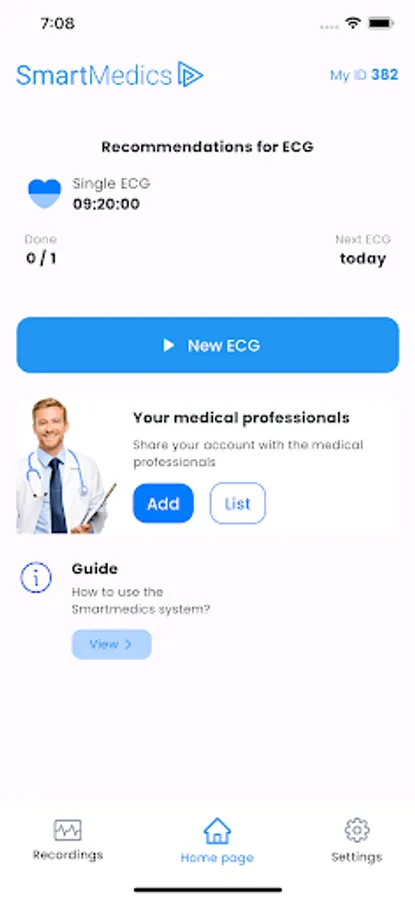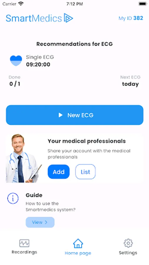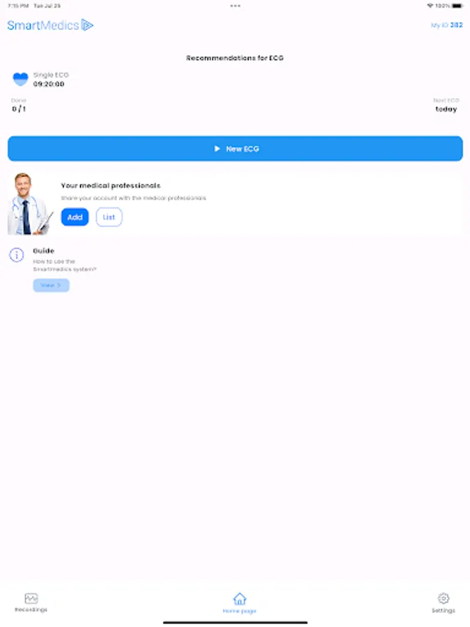 SmartMedicsECG is a 12-lead ECG that patients can use at home for self-monitoring under the guidance of a medical professional. It is recommended that any results be consulted with a physician.