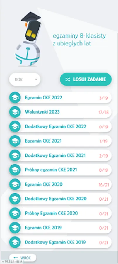 3/ Exam mode - the user solves exam tasks from previous years, the tasks can be solved with exam papers or in random mode.