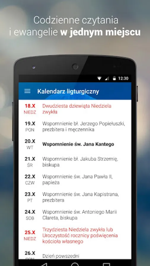 • liturgical calendar - daily readings, gospel and psalms (Holy Bible, Bible),