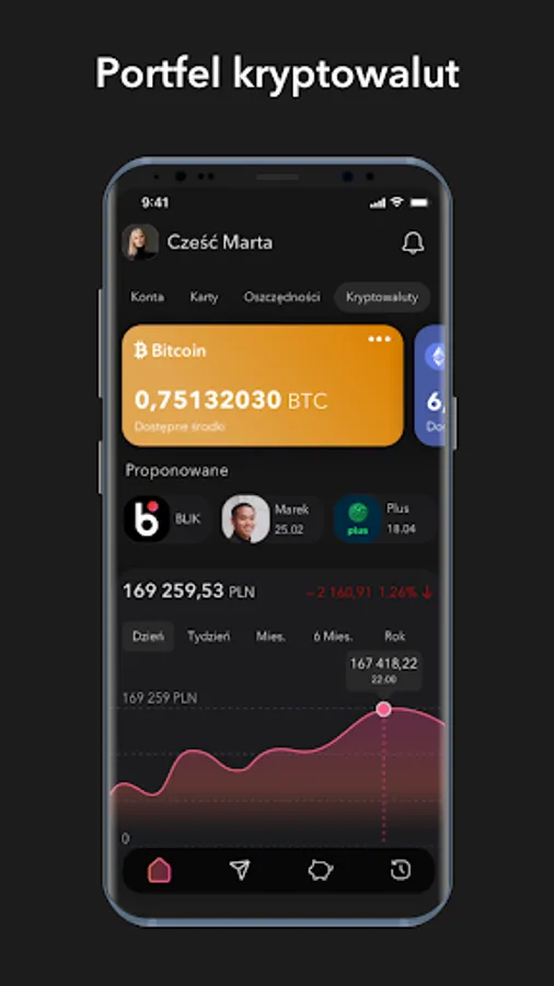 Credit, debit cards, history, details, freezing selected functionalities, reservation, PIN change, limit management, credit card repayment (independent and automatic)