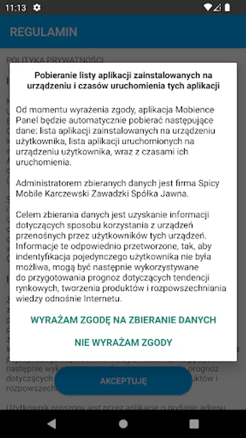 The Mobience Panel application also collects the following data: a list of applications installed on the user's device, a list of applications launched on the user's device, along with their launch times