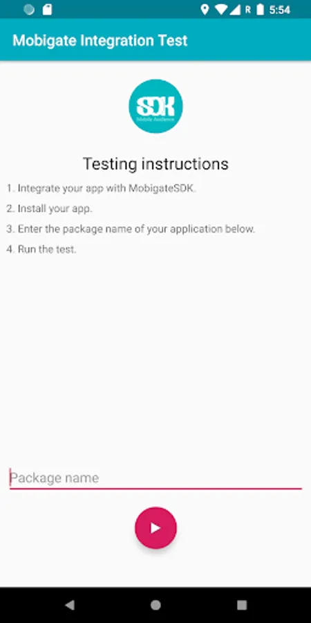 Test application used to verify and test Android MobigateSDK integration before submission to the Google Play store.